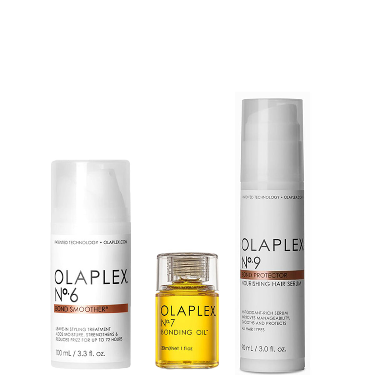 Olaplex No. 9 är ett serum som både ger skydd mot värme upp till 230 grader och föroreningar Olaplex No. 6 är en styling leave-in creme som eliminerar friss upp till 72 timmar minskar föntiden och gör håret mjukt samt följsamt och Olaplex No7 är en högkoncentrerad viktlös reparerande och vårdande stylingolja som ger en dramatiskt förbättrad glans och mjukhet i håret. För att få ut ett maximalt slutresultat ska du använda No. 9 tillsammans med No. 6 och No. 7. Börja med No. 9 applicera sedan No. 6 föna håret avsluta sedan med No. 7. Olaplex No 6 – Bond Smoother 100ml En styling leave-in creme som skyddar reparerar stärker och återfuktar alla r av hår. Denna koncentrerade och mjukgörande leave-in creme är utmärkt för alla r av hår även färgade och kemiskt behandlande hår. Föntiden förkortas och håret blir silkeslent. Olaplex’s Bond Smoother eliminerar frizz och flygigt hår i upp till 72 timmar. Olaplex No 7 – Bonding Oil 30ml Olaplex No7 är en högkoncentrerad viktlös reparerande och vårdande stylingolja som ger en dramatiskt förbättrad glans och mjukhet i håret tar bort frisset och ger dig ett värmeskydd upp till 230 grader och kan därför användas tillsammans med alla värmeverktyg. Olaplex No 9 – Bond Protector Nourishing Hair Serum 90 ml Olaplex No. 9 är ett multifunktionellt serum rikt på antioxidanter som stärker ditt hår och skyddar mot fria radikaler föroreningar och slitage. Det är ett viktlöst silikonfritt serum med många fördelar som ger omedelbart resultat i ditt hår.
