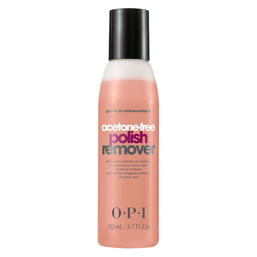 OPI Aceton Free Polish Remover innehåller fuktgivande aloe vera och avlägsnar skonsamt nagellack från naglarna. Vätskan är acetonfri och kan utan problem användas på konstgjorda naglar utan att skada dem.